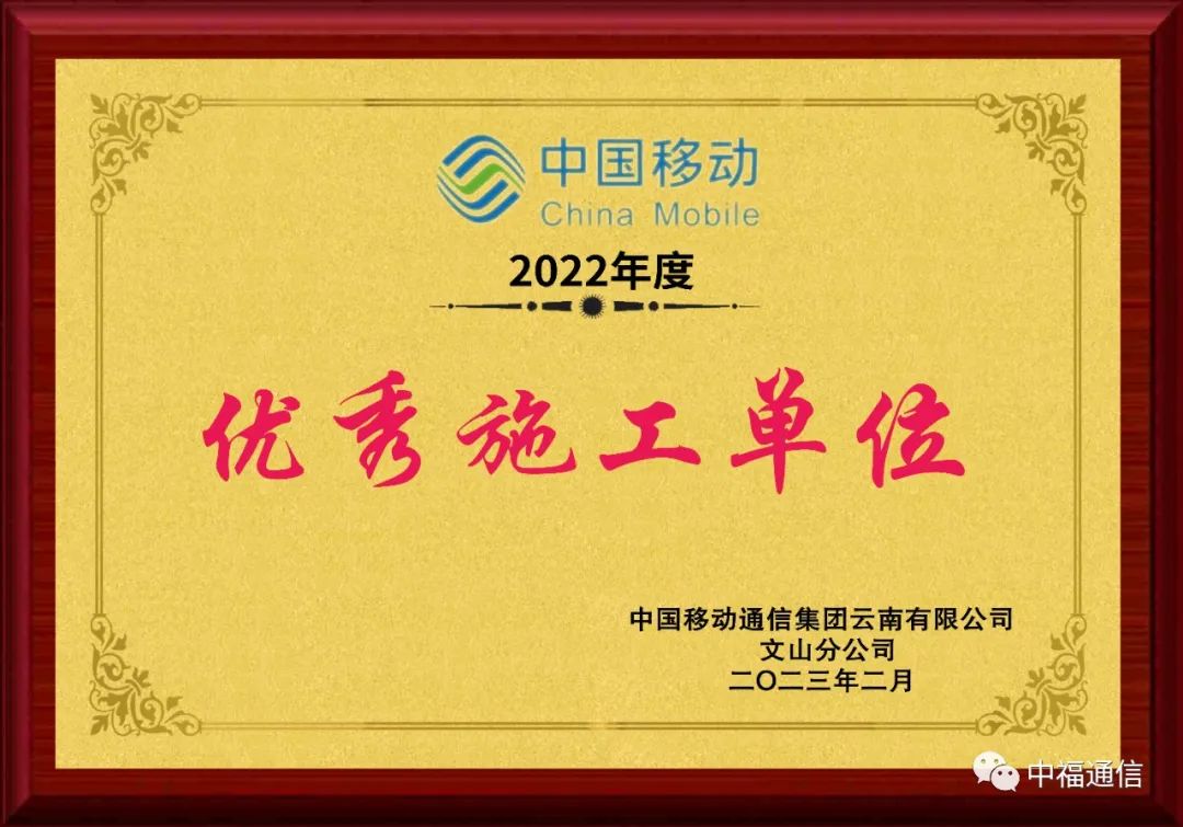 近日,北京中福通信工程有限公司云南分公司在文山地區(qū)移動通信工程中項目建設(shè)中,榮獲中國移動通信集團(tuán)云南有限公司文山分公司頒發(fā)的“2022年度優(yōu)秀施工單位”榮譽(yù)稱號。全體員工表示,踔厲奮進(jìn),踵事增華,發(fā)揚(yáng)拼搏精神,一如既往地做好通信技術(shù)服務(wù)工作,為公司爭取更大光榮!
